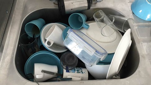 Every year thousands of cups, bowls, spoons and forks are used in the doctors mess. With busy people on call sometimes rushing off to emergencies mid meal the washing up can accumulate. If you want a clean cup or bowl you have to rummage around in the dirty dishes and find one and clean it before you can have a cup of tea. It’s awkward and takes longer than if the sink was clear and all the crockery was clean to use. You might even break a glass and cut your finger. It’s not deliberately done. People intend to always keep up and never fall behind but tend to fall behind when times are busy and there’s lots of different people involved.