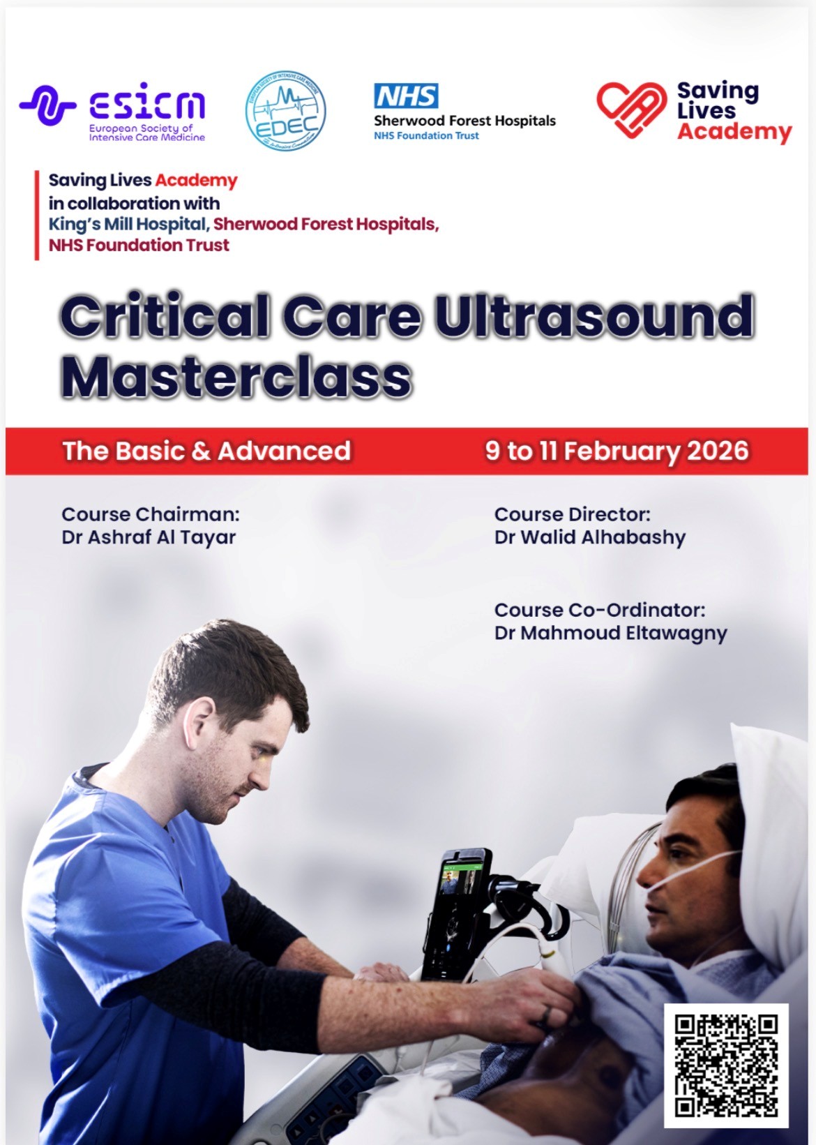 Join us for The Basic & Advanced Critical Care Ultrasound Masterclass, Endorsed by EDEC and the European Society of Intensive Care Medicine (ESICM) and in collaboration with King’s Mill hospital, Sherwood Forest Hospitals NHS Foundation trust.